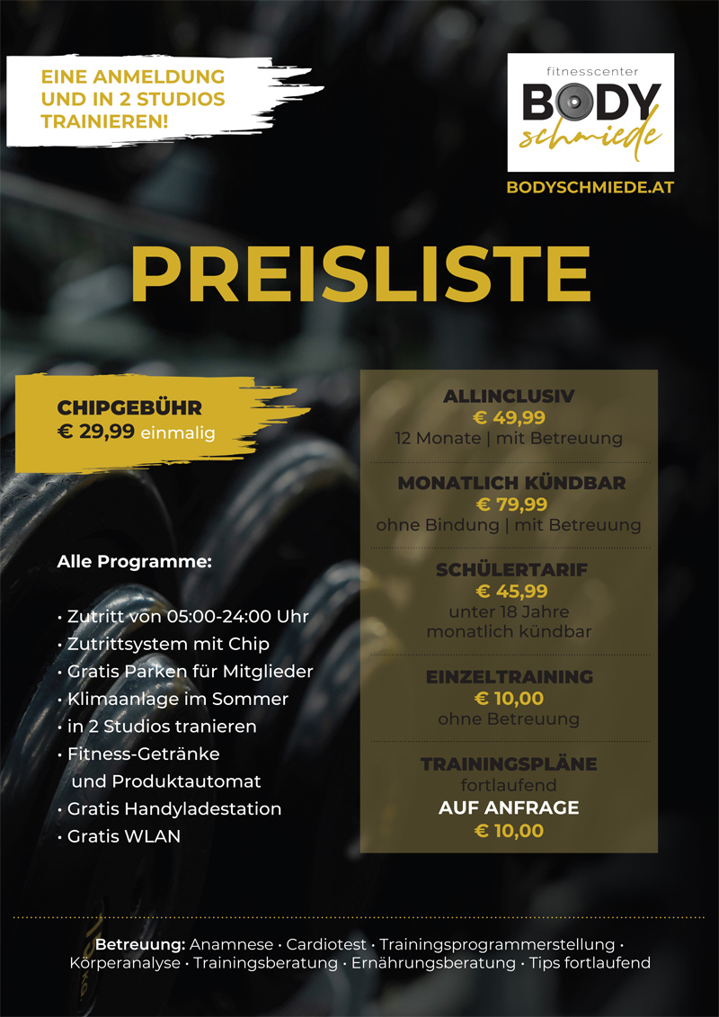 Anamese - CardiotestTrainingsprogrammerstellung fortlaufend Körperanalyse - Trainingsberatung - ErnährungsberatungTipps fortlaufend